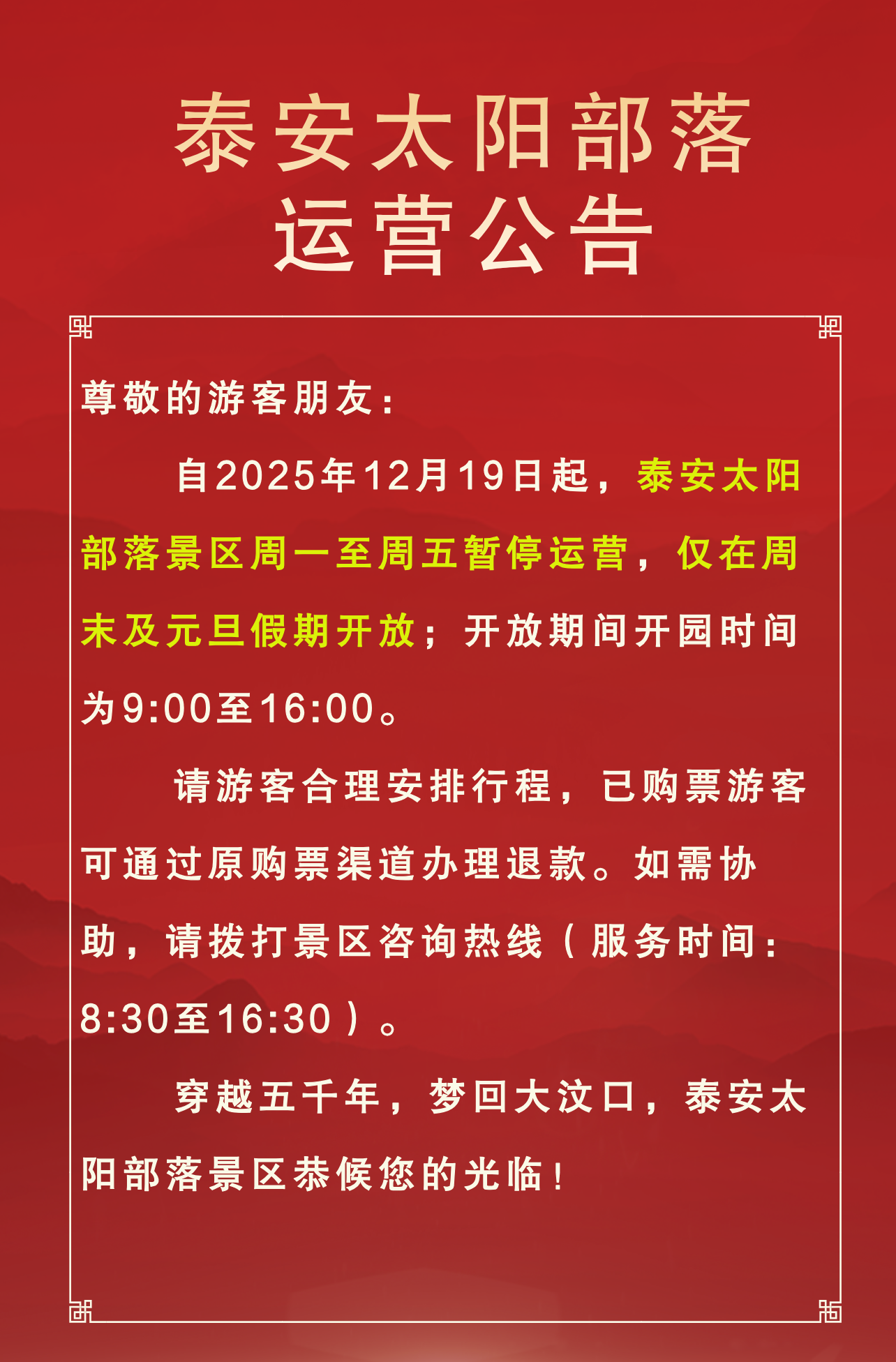 景區(qū)運(yùn)營(yíng)公告