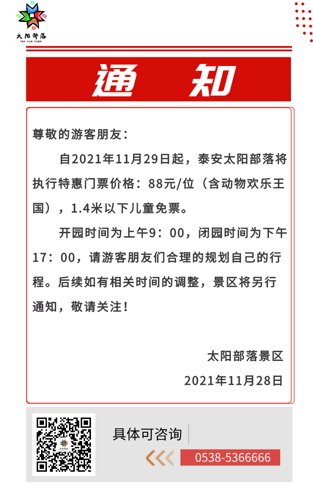太陽部落自2021年11月29日起將實行冬季運營時間